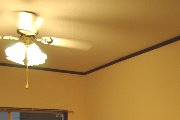 プ・ルームセトゥル 205,206号室 この2部屋はシーリングファン付の白熱電灯の器具を使いました。 この器具の弱点は重いこと。なので、天井裏に潜って(表現おかしいか?)取り付け部分の補強が欠かせません。